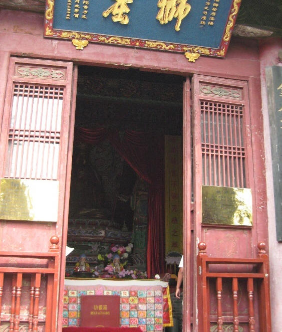 大雄宝殿后有接引殿,为一般寺院所罕见。长14米,进深10.7米。为双层殿基,是寺内最小建筑。殿内供西方三圣。中为阿弥陀佛立像,左边为持净瓶的观世音菩萨,右边握牟尼宝珠的是大势至菩萨,均为清代泥塑。