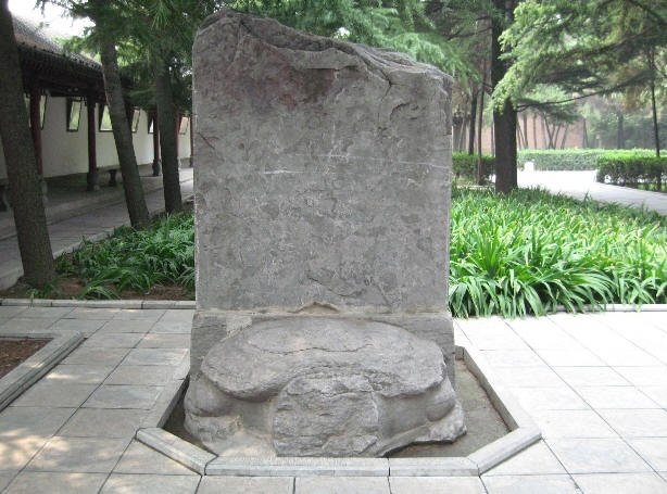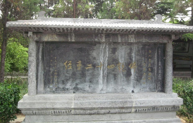 走进山门,西侧有一座《重修西京白马寺记》石碑。这是宋太宗赵光义下令重修白马寺时,由苏易简撰写,淳化三年(992)刻碑立于寺内的。碑文分五节,矩形书写,人称“断文碑”。山门东侧有一座《洛京白马寺祖庭记》石碑,这是元太祖忽必烈两次下诏修建白马寺,由当时白马寺文才和尚撰写,至顺四年(1333)著名书法家赵孟頫刻碑,立于寺内的,人称“赵碑”。过东西对称的两碑,便是白马寺的第一殿——天王殿。