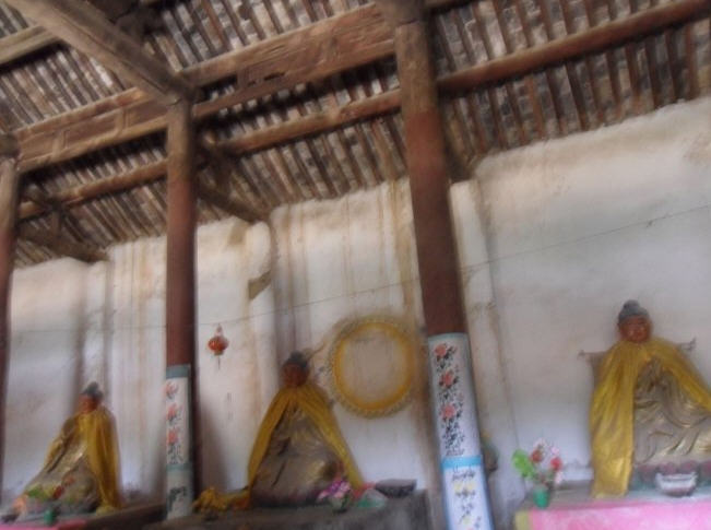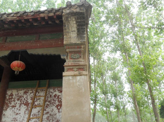 大殿的山墙,青砖白缝,相传是用糯米熬粥加生蛋清拌石灰和成的浆,灌缝而成。