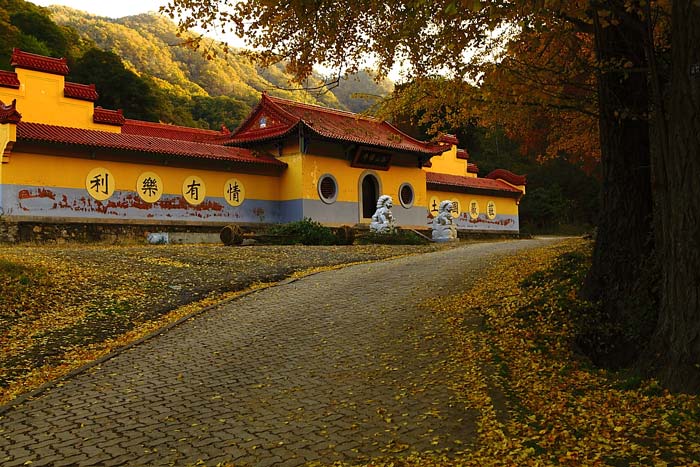 复建的洪山禅寺在大洪山万寿禅院旧址上。此地正处在九龙拱拜、群山环抱之中。左“青龙”逶迤腾绿浪;右“白虎”伏首聆禅机;北“宝珠”峻峰抵天,复穷岭以排空;南剑口飞瀑悬挂,洒甘露而喷珠。新院宇飞檐斗拱辉增日月,碧精舍红墙金瓦光烁云天。