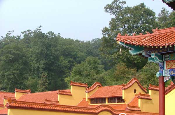 垂荫伞盖千峰秀,溪吟风嘤万壑幽。汉东百川佛号 起,楚北千河玉露生。洪山禅寺像一颗光烁云天的佛舍利,嵌刻在大洪方圆350平方公里十万大山的绿涛云海之中。