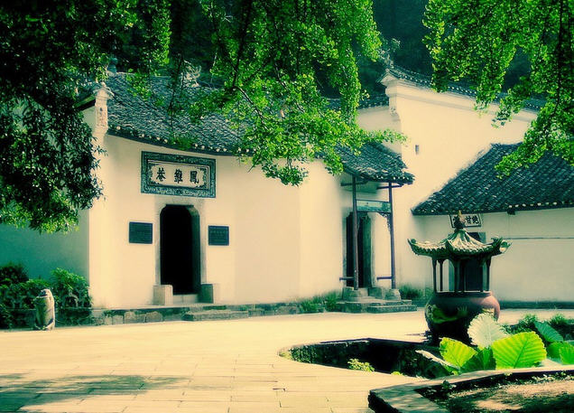 位于南屏山东南的金鸾山上。走近金鸾山,山门横额上“赤壁古风”几个大字赫然醒目。相传三国时庞统曾隐居于此。原建筑简陋,后世屡次扩建,但又迭遭兵焚。现存殿室数间,系清道光二十六年(1846年)重建,新中国成立后曾维修,青砖灰瓦,甚为古朴。主室有庞统塑像,撩眉卷须,庄严刚毅;配室一置图书,一作客房,异常明洁。庵之周围,山径崎岖,苔痕布秀;尤其古树参差,常聚异鸟飞鸣,苍干虬枝,间有枯藤缠绕,其中一棵千年以上的银杏,绿叶森森,参天覆地,益显幽深雅丽,别具景趣。