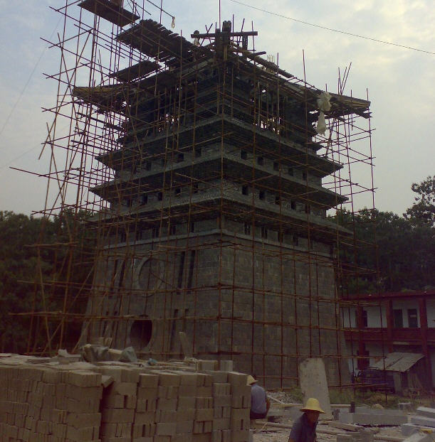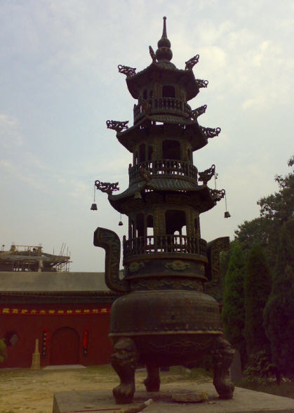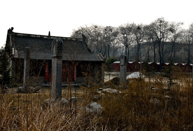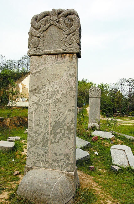 在该院天王寺后,坐落着一片碑林,大多伤痕累累。该寺陪同记者的释常慈小长老介绍说,洞林寺比少林寺建寺还早300年,今仅存两殿、一古塔、一玉佛、一鼎和碑刻。