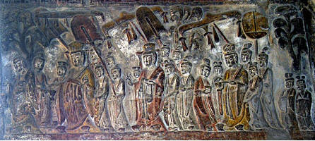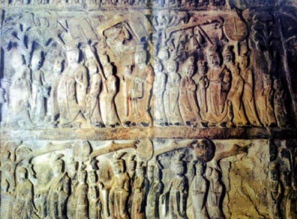 巩义石窟现存洞窟5所,千佛龛一个,小佛龛255个,摩崖大佛3尊,佛像7743尊,碑刻题记200余块。这里的规模虽比不上龙门、云岗那样雄伟庞大,气势磅礴,但小世巧玲珑,惟妙惟肖则是举世罕见的。这里洞窟门两侧石壁上有三层绝美的浮雕--帝后礼佛图,左侧以皇帝为主,后随文武大臣;右侧以皇后为主,嫔妃依次排列。帝后前由僧人引导、侍女掺扶。象这样的帝后礼佛图,构图之协调,刀法之熟练,造型之逼真,匠心之独运,实乃绝无仅有,堪称国家之珍宝,艺术之绝品,令人叹为观止!