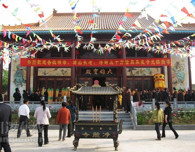 净麓寺位于古城阳逻之东,十华里万山之畔,白玉山上,是阳逻三大名刹之一,伽蓝菩萨关胜道场,原名冯家庵,开始建于明末清初,在文化大革命中庙宇遭受毁坏,现之庙宇由当地村民发心修建,2002年僧人释法雨师傅来此地后在原有基础上在当地政府关心支持下历经八年初现规模。