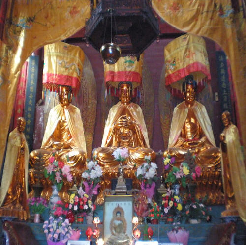 又名“西山寺”,是东晋太元年间高僧慧远所建,是中国佛教“净土宗”的发祥地。寺中有一堂(文殊师利堂)、三泉(滴滴泉、涵息泉、活水泉)、六殿(天王殿、拜殿、大雄宝殿、观音殿、武圣殿、念佛殿)。殿堂为砖木结构,莲花斗拱,飞檐射脊,红椽彩厅,金碧辉煌。大雄宝殿内,数十尊罗汉菩萨或坐或卧、或动或静,造形精巧,维妙维肖。
