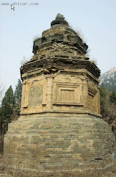 环绕于道安国师这颗恒星的行星数以千计,最著名的有27颗,洛阳福先寺仁俭禅师,嵩岳寺破灶堕禅师、元圭禅师,南岳怀让禅师等,可以说是星光灿烂,而让会善寺耀如白昼的是净藏禅师。净藏禅师在会善寺从道安国师参禅十年,道安圆寂后又到岭南从慧能参禅五年。“能遂印可,付法传灯,持而北归”,回到嵩山会善寺弘扬南宗顿悟禅法,净藏禅师开南宗禅法北传先河,比大力弘扬南宗禅法、“楷定禅门宗旨”的神会要领先得多。净藏禅师住持会善寺三十年,在北宗禅法大行其道的嵩洛地区独树一帜,但我们还是可以想见因禅法分歧而筚路蓝缕的艰难程度。斯人已逝,墓塔独存,净藏禅师塔是我国现存最早的八角形仿木结构亭式砖塔,以其极高的文物价值于1988年被公布为全国重点文物保护单位。净藏禅师是六祖慧能的传灯弟子,是禅宗“宗旨密传”的七祖,只不过在皇上钦定的七祖神会光芒的遮蔽下,星光才相对弱淡了些。