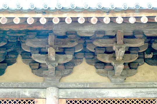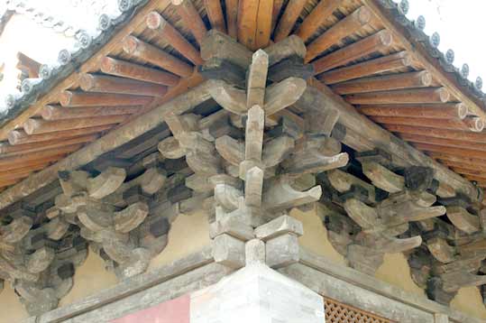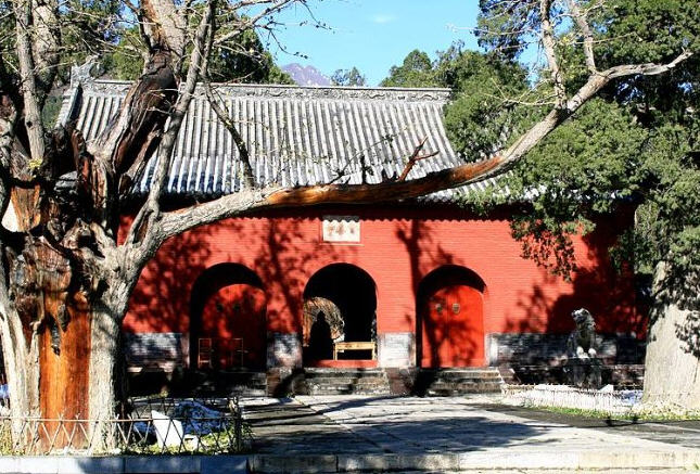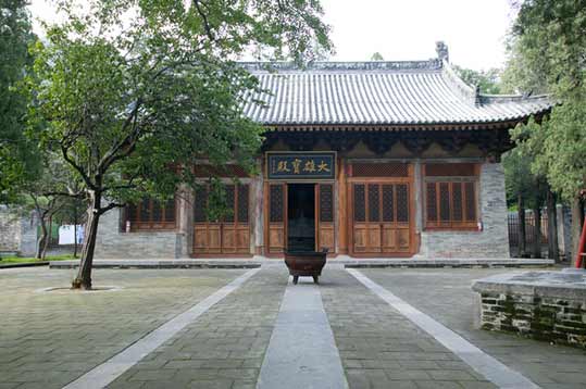月台北的大殿为大雄宝殿,面阔五间,进深三架,单檐歇山顶,所施斗拱,粗大朴实,昂首下垂。为仿宋民间工艺,在建筑时间上仅次于少林寺初祖庵大殿,在建筑艺术上有较高价值。