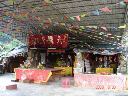 海丰县万福寺 原俗称纸寮庵,位于海丰县海城镇埔仔洞梨仔山,该山多产矿物,自明朝至近代,远近矿工集居此山以采矿为业。山峰环护,曲水迂迴,风景优美,成一胜地。传说 明万历年间,高僧普胜(南海人)初居此山,遂开创纸寮庵。坐西向东,面宽三间一进。清末民初,由濬韬(大道庵僧)禅师兼理寺务。