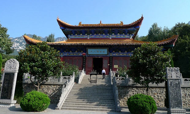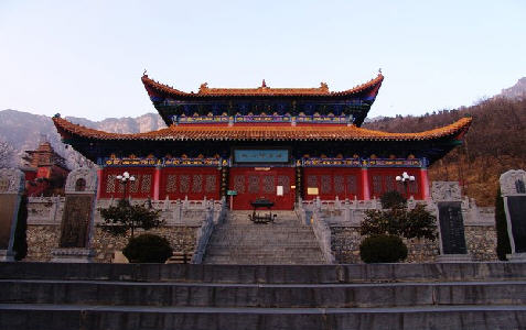 法王寺位于登封市区北五公里太室山南麓玉柱峰下,北依嵩岭,含抱如椅。俯瞰二熊诸山,排列如拱,山峰罗列,溪水潺流,苍松翠柏,景色秀丽。寺东有峡,形若丰园形大门,位嵩山顶端为“嵩门”,是登封八大景之一。明朝洪武年间,上党郑大原游览中岳,观罢此景,曾挥笔赞曰:嵩门胜迹冠中州,幸此登临值中秋。皓魄初悬苍谷口,清光满射碧山头。祗园暂息尘劳梦,民社宁忘国计忧。徒倚欲归情不厌,松涛钟韵两悠悠。古人诗颂法王寺为“嵩山第一胜地”,至为确切。