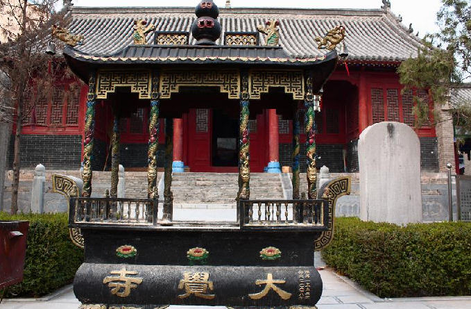 大觉寺,位于延津县城北街,始建于唐天宝年间(724-755)。明洪武年间置僧令司,宣统六年(1426)僧定元重修。大门三楹,二门三楹。正殿为大雄殿,三间,供奉佛祖释迦牟尼。大雄宝殿前右侧有元代书法家赵孟 (字子昂)亲书《长明灯记》石刻一副。正殿两厢房左为伽蓝殿,右为地藏殿,正殿后为水陆殿(万历年间改为大土阁),三殿各三间。现仅存大殿。