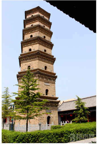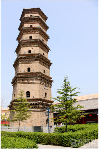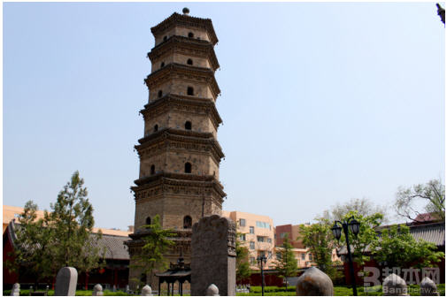 大觉寺门口,高耸着一座六角七层的古塔,这就是万寿塔。据延津县志记载,万寿塔始建于唐天宝年间,毁于明嘉靖二十八年(1549),又二年,知县李元春劝令士民重修,修了两层因财力不足而停工。隆庆三年(1569年),知县陈彝募捐续修,又未完成。至万历十一年(1583年),知县郝亦立再次施材续建,因郝奔丧,又未完成。直至万历十三年(1585年),才有知县张光宇捐俸银命匠合顶,并铸千余斤重的铜宝瓶(塔葫芦)置于塔顶,至此才算竣工。重修该塔自破土到完成, 共经历了三代皇帝、十五任知县,历时三十六年。现为省级文物保护单位。