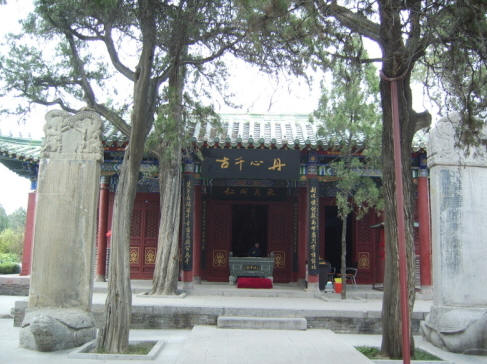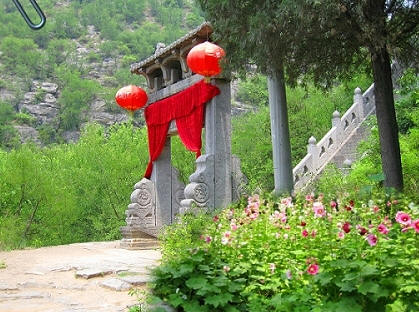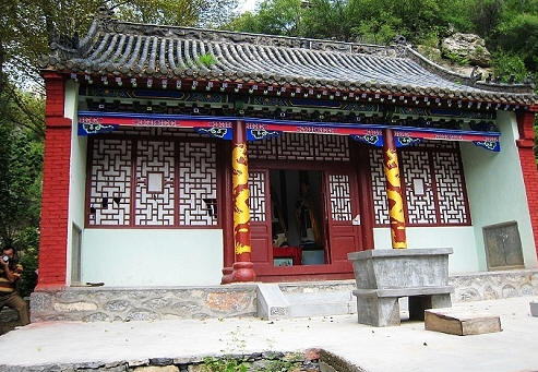 这座殿堂是龙王殿,当年康熙皇帝来到这里游玩,西边的天气阴了,满天的乌云向东边压来。当地的官员劝说康熙赶快回去,康熙却说真龙天子在这儿,龙王不敢让雨水过来。这时山谷的西边倾盆大雨下来起来,然而谷的东边确是晴朗的天空。当时康熙皇帝就亲笔提词写下四个大字“欲罢不能”,刻在了石碑上。这块石碑后来被日本人炸掉了。现在的龙王庙是当地老百姓为祈求风调雨顺而捐建的。