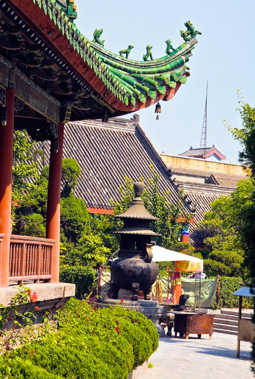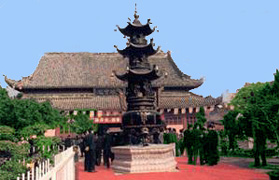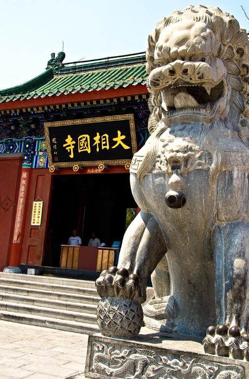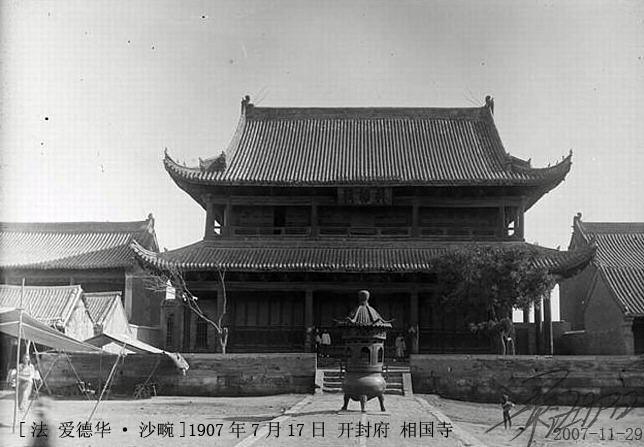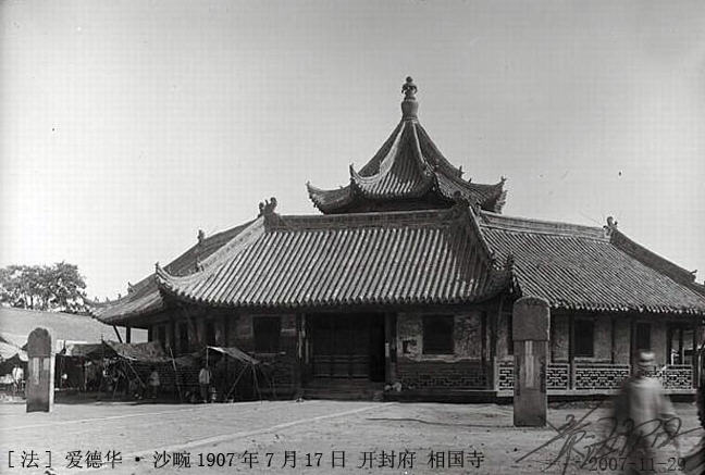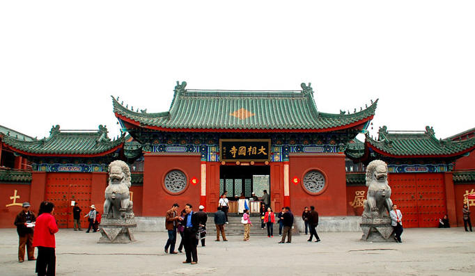 大相国寺位于河南开封市自由路西段路北,我国著名佛教寺院之一,相传为战国时魏公子信陵君故宅。北齐天保六年(555年)在此创“建国寺”,后遭水火两灾而毁,至今已有一千四百多年历史。唐初,为歙州司马郑景住宅。武则天长安元年(701年)慧云和尚寄宿安业寺,发现原郑景宅池内有楼殿幻影,认为此地很有灵气,便募银建寺。唐中宗神龙二年(706年)慧云到濮州(今山东鄄城北)铸了一尊一丈八尺高的弥勒佛像,于睿宗景云元年(710年)请回开封,翌年,慧云靠募捐购买郑景宅院造寺,在挖基时掘出旧建国寺碑,遂沿用“建国寺”名。第二年(延和元年),睿完敕令改名为相国寺,并赐“大相国寺”匾,习称相国寺。昭宗大顺年间(890-891年)被火梵毁,后重修。宋太祖年间(962年)五月又遭火灾,后又重建。