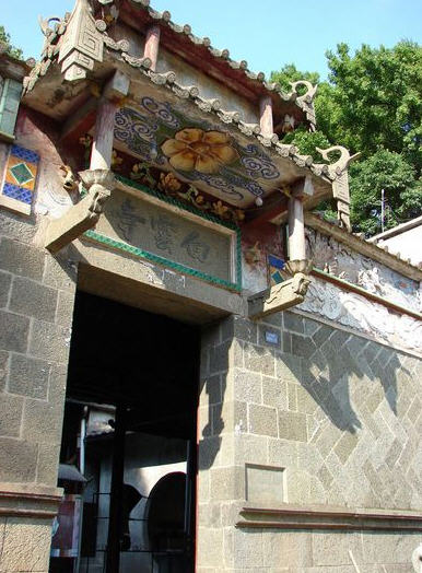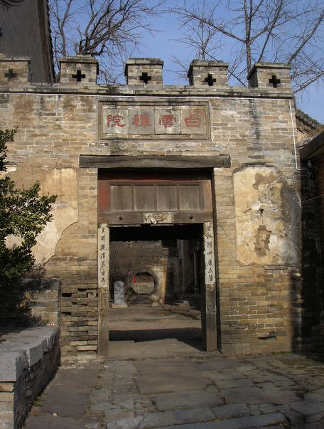 山门:建在一石砌高台之上。面阔三间,进深一间,砖木结构。硬山顶,上覆灰色筒瓦。脊饰为精美之荷叶荷花。明间前后辟门,分别安板门各两扇。门前各砌有青石台阶,两侧有青石垂带。次间前墙各置方格木窗。山门两侧各有掖门一间,皆为硬山式灰瓦盖顶。山门前为一高台,台两侧设有坡道。高台正前下方东西横排有宋植银杏树五株。