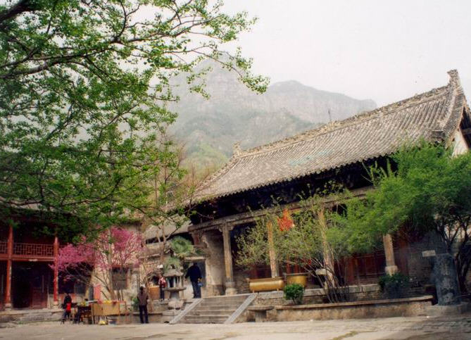 整座寺院依山而建,规模宏伟。山门前有五株两人合抱的千年银杏,拔地而起,直冲云胃,树冠硕大,绿叶如盖,浓荫覆地面积达三亩许。据传为唐人所栽,站在树下,顿觉清爽宜人,一路爬山的疲劳早已驱散殆尽。 寺有三门,右门书“白云禅院”。院内原栽搔痒树一株。为寺内珍品。据说游人用手轻轻搔动对身,树含羞怕庠,枝叶簌簌抖动,搔痒树名闻中州,曾引来游客无数,遗憾的是此树现已不存,原地栽种一株百日红。