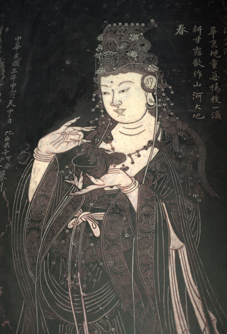 这里还收藏了许多书画碑帖。收藏的名书画共有一百多幅:有元代的黄子久、王蒙、吴仲圭、倪云林等人的山水画,有明人朱在、程正揆、王铎、石涛、董其昌及清人禹之鼎、高其佩、郑板桥、王翚、沈南蘋、何子贞等人的山水人物、楷草隶篆和翎毛花卉作品。寺内还藏有唐代书法家褚遂良的《圣教记序》和柳公权的《金刚经》等正楷拓本和珂罗版本以及释怀素的草书。褚、柳书法以轻便刚劲著称,而怀素的草书则以挥笔似画闻名,都有较高的书画价值。清代释竹禅绘画的十八罗汉像和五百罗汉谱,吴兴沈铨所绘“鹿鹤同春”五彩画、明代书画家孙志、王宠用菩提树叶绘制的菩萨像谱,唐代阎立本绘画石刻观音像等,都刻画入微,形态逼真,堪称艺术珍品。更为名贵的是宋代古拓本《禹迹图》和《华夷图》,详细记载着我国古代山川、河流、沙漠、湖泊、地理,记述了上自汉武帝时开拓西域,下至唐宋时代对长城以外各地的治理等大事,是两幅十分珍贵的历史图案。