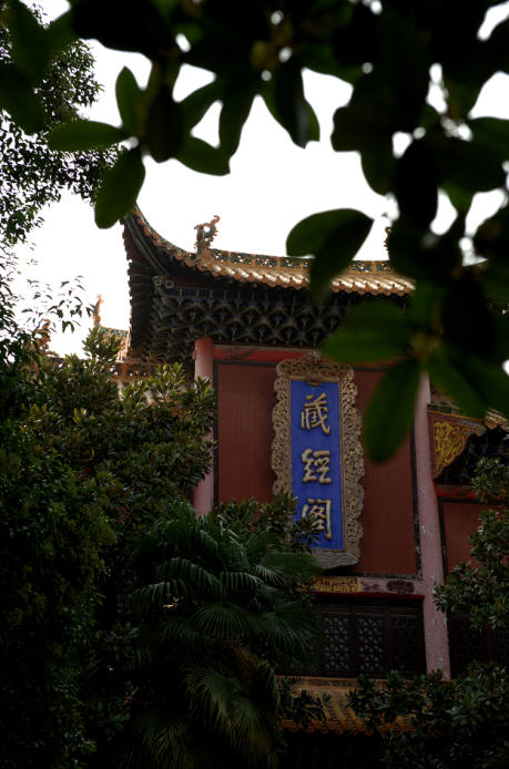 藏经阁里收藏的佛经有:清代《龙藏》部,共714函分作48个柜子储藏。宋代版影印本《碛砂藏》一部,计593函。清末民初上海印《频伽藏》一部(缺“寒”字一号)。清末民初商务印书馆影印日本版《续藏》和《大正藏》各一部。此外,还有两件令人惊叹的珍品:一是清光绪元年(1875年)湖南衡山69岁老人李舜年书写的“佛”字经,这个“佛”字是在长宽不超过六寸的纸上,由《金刚经》和《心经》的原文共5424个字组成。每个字只有芝麻大,肉眼分辨不清;若在三十倍放大镜下观看,每个字都一丝不苟,笔力挺秀,实乃书法珍品。另一件是民国初年(1915一1924年),武昌僧人妙荣和尚刺血调和金粉抄成的《华严经》和《法华经》,字体娟秀,堪称稀有。