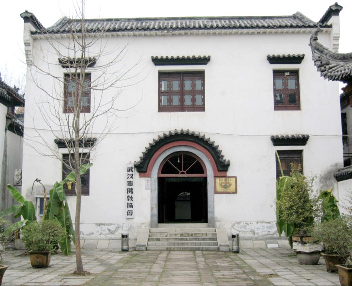 北院的主体建筑是藏经楼。藏经阁1920年至1922年兴建,是一座两层五开问的楼阁式建筑,高约25米,顶为兽头大脊,鱼角搬爪,斗拱飞檐,古朴玲珑,当面为四柱通天,双凤朝阳,五龙戏珠。整个建筑、门扇窗牖,涂朱绘彩,刻画镂雕,精巧壮观,金碧辉煌,是武汉市唯一一座砖木结构的古建筑物。这里珍藏着许多佛教文物,除《藏经》外,还有佛象、法物、石雕、木刻、书画碑帖及外文典籍等。