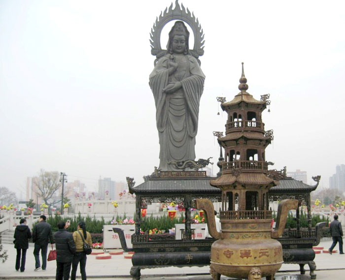 这里收藏的佛教造像有来自敦煌、云岗、龙门、麦积山、炳灵寺及各地千佛洞的石佛、石刻。艺术风格多种多样,有鎏金、银、铜、石刻、木刻、瓷塑、泥塑、牙雕、玉雕等多种质地,还有一些是东南亚各国的赠品。是国内收藏佛像较多的一个佛寺,部分文物是国内外少有的珍品。如藏经阁正厅陈列的一座玉石雕成的释迦牟尼佛像,重一吨多,雕工细腻,技艺精湛,是1935年太虚法师访问缅甸时,仰光的佛教徒赠送给我国的。象这样精美的玉雕佛像,国内仅有三尊,另两尊分别在北京和上海。再如南北朝时埋藏的石刻观音像,姿态轻盈,髻结敞胸,身佩缨络,手携净瓶,距今已有1400多年的历史,具有较高的历史艺术价值。还有两尊红木雕刻的达摩像,是清康熙初年的木雕精品,两尊像,一坐一立,富有个性,生动表现出达摩面壁九年,闭目冥思、超然物外的形态。