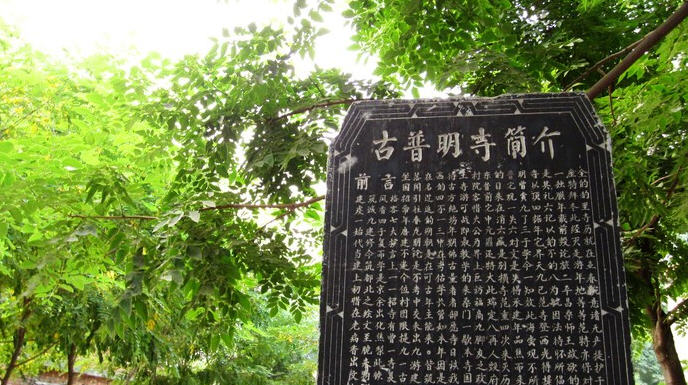 寺内僧人释如教说,普明寺现存文物其中有一块六角形经幢底座,上刻序文及建造时间“大明正德六年(公元一五一一年二月初八)”;一块莲花形经幢顶盖。