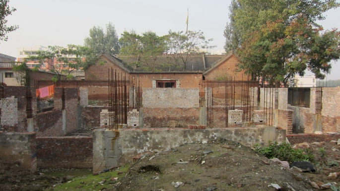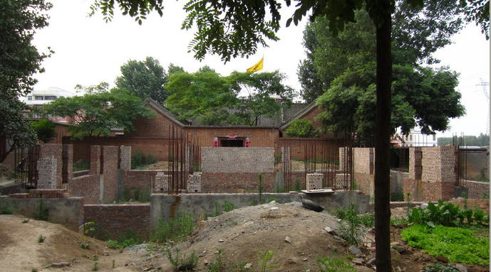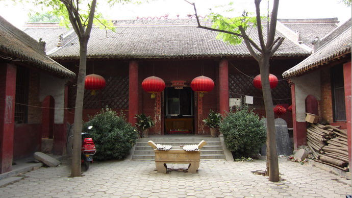 焦作普明寺又称鸳鸯寺,位于马村区西待王村东。据记载建于大唐龙朔三年(663),在此之前为庙宇。普明寺南100米处,菜地间、树林掩映下,有一座塔,砖石水泥结构,三层。塔第二层南面镶嵌有“重建普明文塔誌”,第二层北面镶嵌有村史。旧塔今已不存,此塔立于一九九一年六月二十日。佛塔四周约二亩多原称为“先茔”,大明正德年间的普行大师就葬于此。