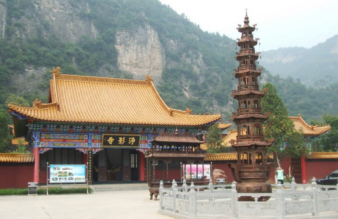 净影寺位于河南焦作,始建于南北朝时期,古称贤谷寺、景净寺,宋以后始名净影寺,历史上又有宝岩寺、金灯寺、金门寺等多种称呼。此处是我国佛教史上的释义高祖、净土宗初祖慧远的出家学法及归骨之地。其后历代多有高僧在此修行,五代时著名画家荆浩,金代时最著名的诗人元好问和文学家赵秉文也都曾在此隐居。净影寺千百年来多有重修扩建,最盛时曾居僧人二百余人。现存寺院为清末时修建,有前殿七间、正殿七间及东西殿各三间,俱为二层砖、石、木混合建筑。旧寺在六七十年代曾作为影寺村的大队部,故在东西配殿的墙壁上至今还能看到当时用红漆刷写的《毛主席语录》,成为那个特殊时代的历史见证。现寺院内还保存有明清几次重修时的碑刻,从中可以看到净影寺的创建及历代重修的经过以及当时寺院的规模和僧人的人数,是修武县重点保护文物。2004年,焦作市公路局在保留旧寺遗址的基础上,出资恢复重建净影寺,寺院规模颇大,有天王殿、大雄宝殿、藏经楼、钟鼓楼、僧舍、方丈室等,远观殿宇寮舍飞檐斗拱,鳞次栉比,入寺则见雕梁画栋,建筑精美,佛像庄严,巍巍壮观。