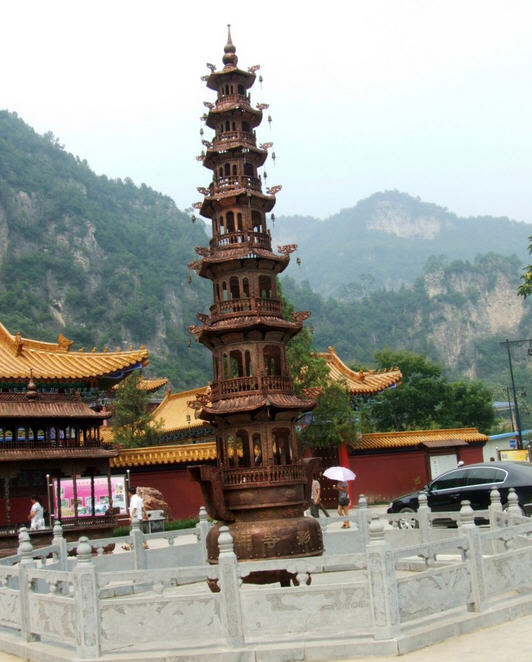 王绪宏诗云:四围山壁立,天光一线通。岩开知鸟道,嶂合是幽宫。塔影千年月,涛鸣六月风。应知谭法处,龙象报神功。