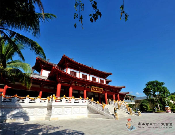 其中“世界上规模最大的三十三观音群像”和“天下第一聚宝盆”已经被载入世界基尼斯纪录,为世界传世珍宝。三十三观音堂已于2009年1月21日(佛历十二月二十六)举行了举世瞩目、千载一时的盛大揭牌洒净大典。三十三观音堂的落成,又为中国的佛教文化、民俗文化注入新的亮点,丰富了海南的旅游资源和内涵,为南山打造世界佛教文化名山迈出了坚实的一步。”三十三观音堂自揭牌开业以来,吸引众多游客信众和佛教大师、西藏活佛、社会名流前来参访。在这里,人们既能领略热带滨海阳光、碧海、沙滩、鲜花、绿树的美景,更能获得佛教文化带来的心灵慰籍,体味回归自然、天人合一的乐趣。是来海南必需观光的旅游胜地,也是到南山不得不去的好地方!