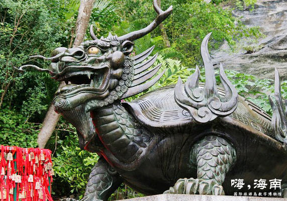 这里,崖州湾弧百里,碧波万顷。鳌山壁立海滨,崖深林翠,岩奇洞幽。山上植被茂盛,风景秀丽,近三万株龙血树(南山不老松)郁郁葱葱。山中有清澈泉水和各种野生动物,山下七公里海岸线蜿蜒曲折,遍布神工鬼斧、肖形状物的石景,还有南海龙王、小洞天、南海神鳌等景观,山海之间宛若一幅古朴优雅的长卷画图,因而自古以来被称为“海山奇观”。