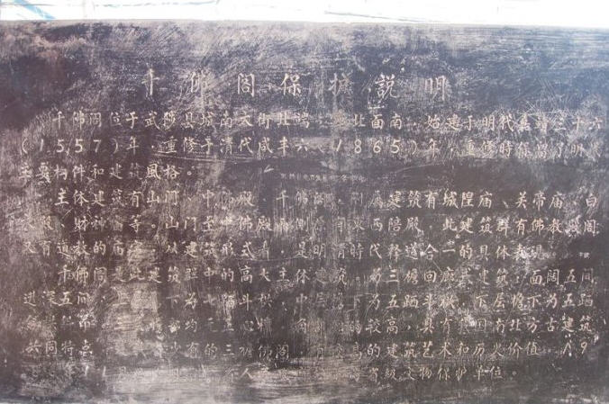 简 介:千佛阁位于武陟县木城镇南大街北端,建于明嘉靖三十六年(1557年),清咸丰六年(1856年)重修。千佛阁占地约1万平方米,保留了明代主要构件和建筑风格。