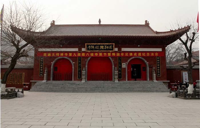 圆融无碍禅寺创建于五胡十六国的乱世,又历经南北朝的战乱,到北齐时虽仅建寺约百余年,但已经被战火蹂躏得破落不堪。后由北齐御封僧稠国师(公元480-560年)奉诏盛建。因僧稠禅师当时不但是被誉为“岭东佛教禅学第一人”的高僧,更是中华佛教“官禅”的创始人,故八方善信听闻禅师奉诏恢复昔日祖师道场,皆倾囊倾力相助,所以只用十余载便使古刹重辉。古刹建成后,朱墙金瓦,殿宇巍立,院落重置,常住僧人曾达千余,时人称之为“大河之北中原佛教丛林之首”。按历史记载,僧稠禅师是公元560年圆寂的,即使以公元560年作为圆融无碍禅寺重生的年代标记,至今也已经1450年了。如此看来,说圆融无碍禅寺是一座千年古刹,实乃名符其实也!