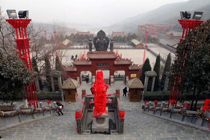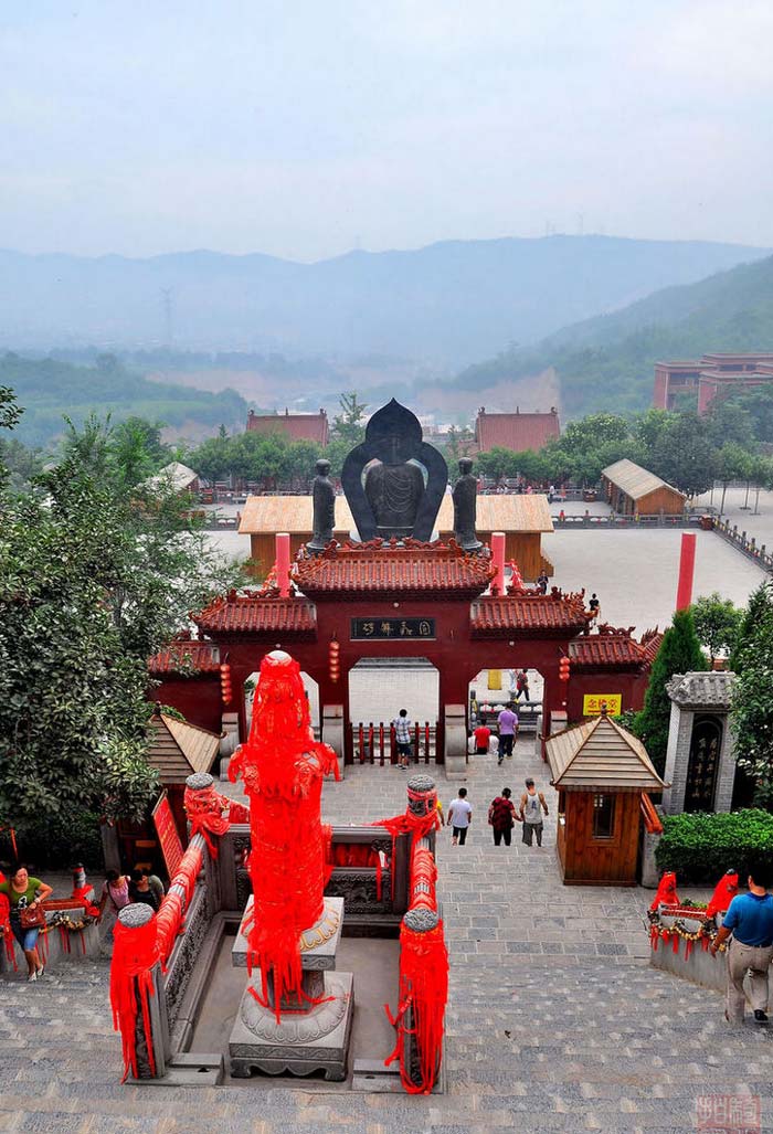 史称为‘太行灵山’的千年古刹圆融无碍禅寺,以其四大名山本尊造像纳入其中,大悲观音殿、大愿地藏殿、大智文殊殿、大行普贤殿。大雄广场中高9 .9米的释迦牟尼佛及阿难、迦叶两位尊者,以其集历代圣迹於一处而放百丈毫光,普施佛恩,普降法雨。如今登高而望,但见吕涧山中松柏滴翠、古树婀娜、院落相错、宝殿辉煌、鳞次栉比,梵音缭绕、佛塔林立,诸多建筑群落与自然环境浑然一体,堪称“深山藏古寺、群峰绕梵刹”的佛国胜地。