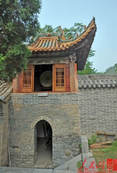 钟鼓楼分列大殿前的东西两侧,各一间,楼内有一大铁钟