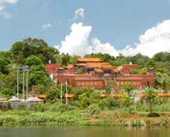 金山寺位于海南省澄迈县城金江镇城郊金江花园,依山而建,可俯视全城。寺庙建筑气势雄伟,金碧辉煌,回廊曲折,气象万千。