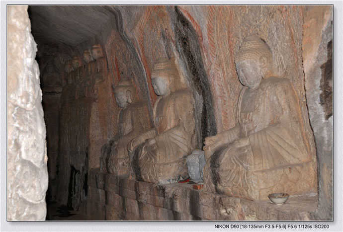 考院内碑刻题记,石窟开凿集中于明弘治、正德、嘉靖年间,前后长达60余年。此应是金灯寺的兴盛时期。资金主要是彰德府(安阳)、潞安府(长治)周边州县的达官贵人、富商巨贾及虔诚信众的施舍。