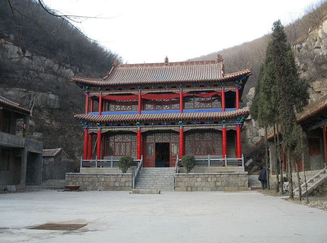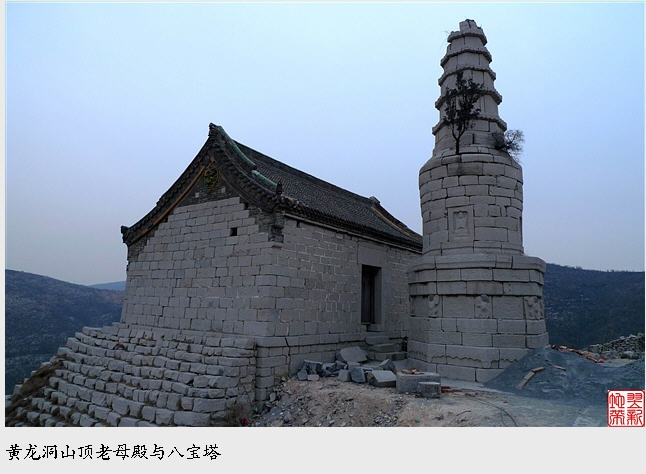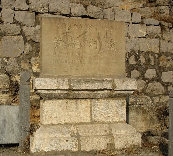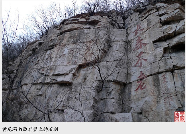 黄龙洞寺里的图示简介知道:“黄龙洞寺,位于安阳西南三十公里的黄阳山麓。建于明代,后仿泰山而建,因规模较小,故称小泰山。因绝壁下有一天然溶洞-黄龙洞,而得寺名。”