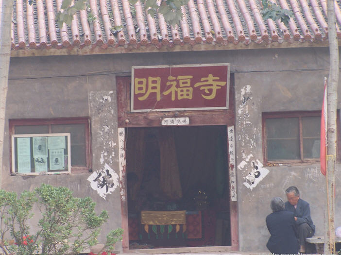 明福寺塔,原高九层,后遭雷击,五层以上倒塌。民国十八年(1929年)复修时改为七层,至今保存完好。塔耸立于高2.4米的石基上。塔身每层出檐两级,外壁砌有圆龛坐佛。第二层以上,东南西北面各辟圆弮门。每层出檐两级,檐下雕刻有斗拱、莲花瓣、飞檐等。塔身外壁砌有横排面砖,上有圆龛,内刻坐佛。塔身各层高度和平面直径自下而上逐层匀递减。塔身各隅砌有倚柱,略显弧形。柱上饰以仰、俯莲花。第五层的四个侧面饰有长方形直棂假窗,第七层的四个侧面饰有卐字形图案。塔顶为桃状,犹如仙桃升空。统观全塔,挺拔壮丽,雕刻细腻,形式独特,为我国古塔建筑艺术之佳作。具有一千四百年历史的明福寺,历经劫难。而明福寺塔像一位饱经沧桑的老者,支撑着颤栗的身躯,仿佛要把历史风云的记录追述。塔外壁的大方砖刻有圆龛,每一圆龛一尊坐佛,一千二百三十四尊佛像神态、姿势各不相同,形象逼真,栩栩如生,颇具唐代遗风,其砖雕艺术之精湛,国内外罕见。塔身中空,释迦牟尼佛祖端坐其中,讲经说法,塔周围的千余名弟子(小坐佛)打坐听禅。释迦牟尼闭目养神的姿态和诚心的祈祷,保佑着这座宝塔。仿佛要唤回那往昔的喧闹……