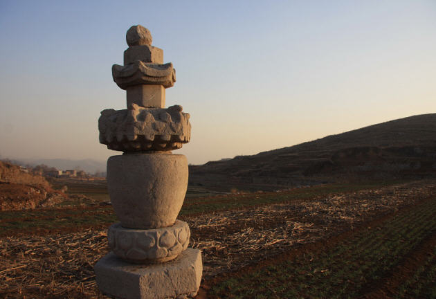 石岭庵的东侧麦田里,有一座遗存的主持石塔,此塔高七级,青石构件,周遭无文字。虽然没能找到文字记载,但此塔石构喇嘛模式和黄花下寺塔林极为相似,据此判断,此庵建设时间最少也在元代。