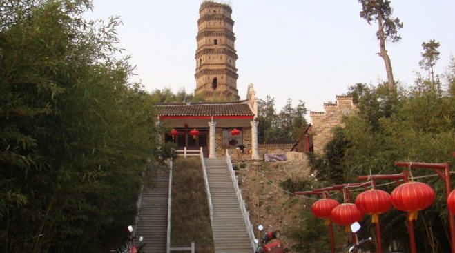 塔身由外壁、回廊、塔心三部份构成,自下而上逐渐缩小,俗称“内外双层宝塔”。此塔系我国唐代著名的天文历法历算专家,僧一行大师在晚年带领近传弟子精心设计,尊照由印度传入的《时轮金刚》修法仪轨,以北京为本初子午线,精准测量全球经、纬二线,核准四季日、月经行投射大地之角度,以文殊般若之智、经天纬地之才,择点起塔。成就现在每年金风送爽时节,立秋之日的正午午时,晴空万里,塔之四周是没有影子的奇妙现象,东楚大地文人墨客书载“柏塔秋荫”。