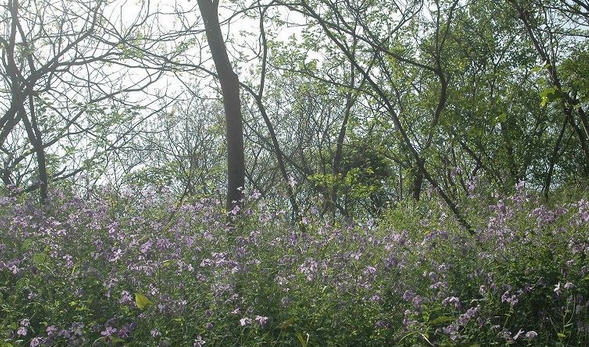 我们沿六化建公路向山里走去,泉石公直把我们带到一座山脊上,说最下面就是乔家冲,现在是邮电学校的校舍,甘泉寺就在我们脚下的乔家冲最上沿。放眼下望,山冲里树木异常茂盛,山风吹来树叶沙沙作响,山冲底部是邮电学校校舍,左手边是华山(土城山),右手边是一座不知名的山梁,山梁右边的山冲里就是一斤、锐利所描述的甘泉寺遗址,与泉石公讲述的位置明显不同,但泉石公肯定甘泉寺就在我们脚下的山冲里。