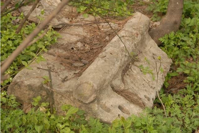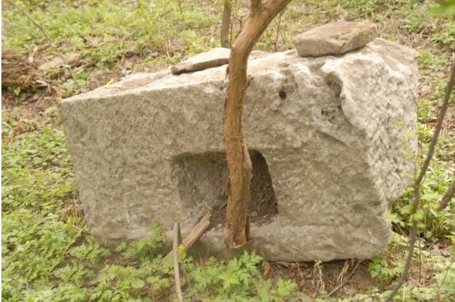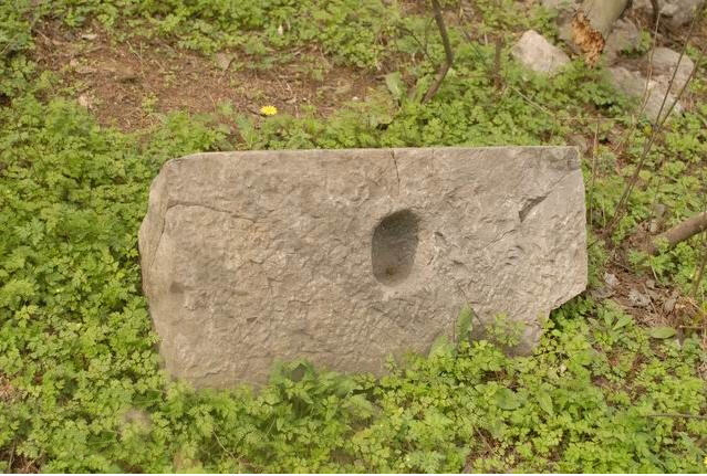 在水沟的右侧有一块隆起的大石头,上面有一个碑座,里面积满了水和泥土。左侧是一个高约一米多的大石头,上面同样有一个长方形碑座。但令人遗憾的是两个石碑都不知所踪,令甘泉寺变得扑朔迷离。