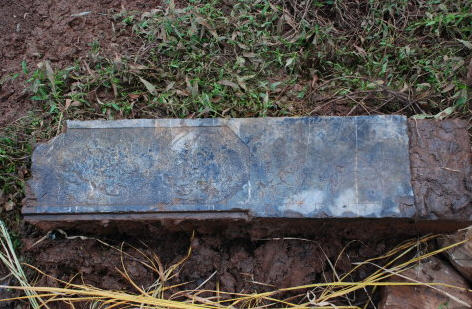 在藏经楼遗址前,一件被村民们当做磨刀石的石雕器件,引起了我们的注意,用水洗掉黏附在该器件上的泥土后,原来是一件刻有铭文的清代道光年间的石香炉。这种石香炉,是古寺庙道观供堂前焚香的必备之物。其铭文字迹多已漫漶不清,我们只能勉强看到“如珠寺”“祖师相前”“道光十七年腊月二十五”等关键字样。即便只有这些可辨的铭文,我们也可以确定此香炉为如珠寺香炉,道光十七年为重建如珠寺而制作,并且是摆放在祖师相(像)前的。让人遗憾的是,长方形的香炉口唇部已被村民磨刀磨损达两三厘米,造成口面残损,如若这样继续磨下去,这件极其珍贵的标有“如珠寺”的清代文物,就会彻底毁坏。