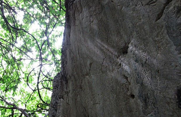 岘石背面有八百年前的游记摩崖,记载了广阳洞、壶天阁、栖霞洞、啸月亭等文化胜迹。我在考察此处的水源时,也从这块游记摩崖中发现了与作者同样的想法。“既成,约漕及余来观,相与叹赏。久之,独恨未能引泉耳。”看来,这篇写于1197年端午节的题刻,在欣赏此寺附近的风光幽静的同时,感到美中不足的是寺的周围没有泉水。