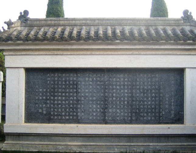 白水寺雄踞山巅,庄重古朴,气度非凡。寺外苍松如画,翠柏夹道,山下白水似带,明波映天。“白水龙飞遗胜迹,紫徽山拱护真垣。”这里风景秀丽,环境幽雅,向为文人骚客驻足之地。