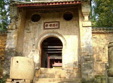 进了山门,我们首先来到古槐树下,古槐树树身有两人合抱那么粗,空心,可容人,仍然枝繁叶茂。此树有个“古槐救主”的传说。传说当年刘秀和王莽在这一带交战,由于王莽军人多势众,刘秀交战时寡不敌众,夺路而逃。逃至古槐树下,刘秀大声呼喊:天助我也。突然古槐树树干开了一道裂缝,刘秀急忙躲藏进去,树干又轻轻合拢。莽军追到古槐树下,不见刘秀身影,就继续往前追。追兵走后,树干又裂开,刘秀在谢过古槐树救命之恩后,又去征战。古槐树历经沦桑,但那道裂缝再没有复原。所以人们把这棵槐树称为古槐救主树。