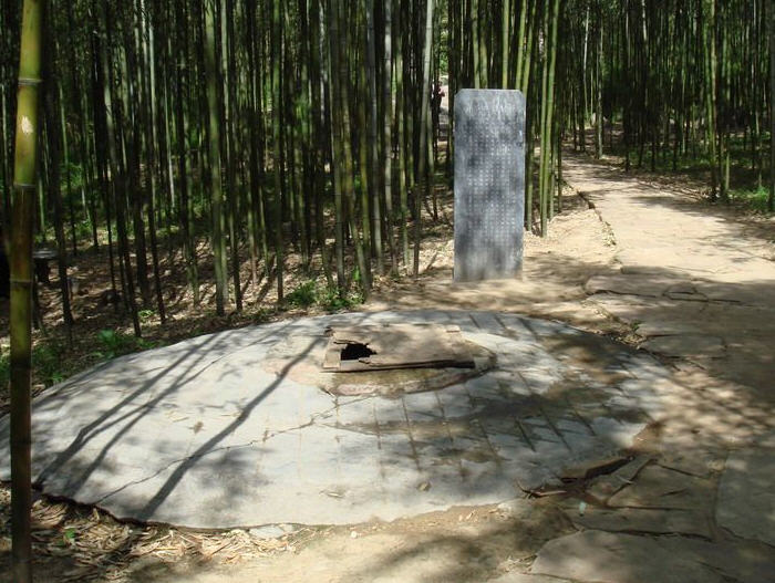 往东沿小路翻过山坡,看到山腰有一口约五亩面积的池塘,俗称“暴雨池”,是山洪暴发时,冲击而成的。平常,山上流下几股泉水汇成一条小溪流,成为湘冲河的源头。山泼黛、水捋蓝、翠相挽,泉水搭了山的秀气,一路“叮咚”,不停地流到暴雨池里。相传当年刘秀在白竹园寺拜师学艺练功时,常喝这池子的泉水,久而久之,眼明心宽脑子灵,练功日有大进,很快练就了十八般武艺,为日后打江山奠定了基础。我们一行人纷纷来到池边,双手捧起清凉甘甜的泉水一饮而尽,顿觉神清气爽,心儿也醉了!