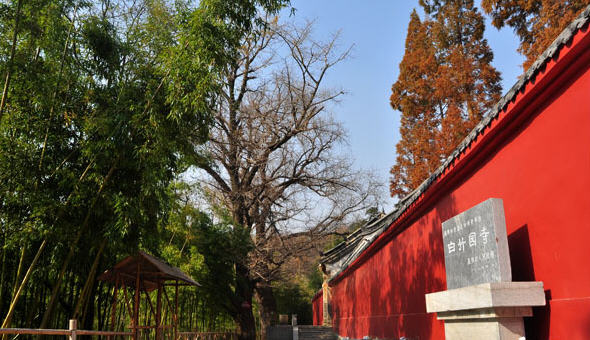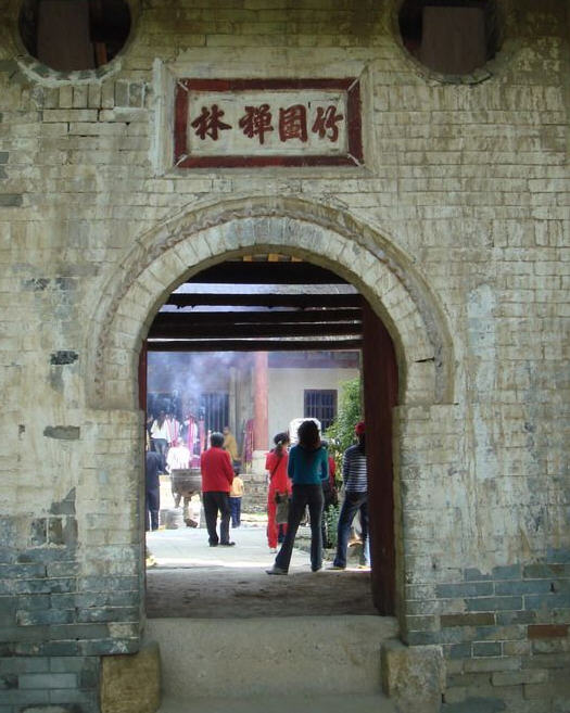 白竹园寺(又名竹园禅寺)位于枣阳城东北50公里处桐柏山麓。湖北、河南两省所辖枣阳、随州、桐柏、唐河四县交界处的青龙山下。东、北距随州、桐柏境均约350米;西、南至湘冲村约500米。原为河南省南阳桐柏县属地,后为湖北省枣阳管辖。据《南阳府志》桐柏县卷记载:“白竹园寺在柳林保,元至正元年建,县志白竹园寺在县西南群山之中,相传有二白竹因名”这里“群峰耸翠,林壑蔚然,茂林修竹”,“高山峻岭,前环后镇”,高僧游览后见此地“天效其灵,地呈其瑞”,乃风水宝地,曾发出“岂非天造地设也”的赞叹,即决定在此建庙,称“竹园禅林”,又称“白竹园寺”。至清代已形成规模,有僧斋僚室二十余间,僧从百余人,成为湖、河两省访古、集会、拜偈的圣地。每逢盛会,这里人声鼎沸、烟雾缭绕,其繁荣情景延续至今。现有天王殿、偏房、塔林、碑刻以及正在恢复的观音殿、大雄宝殿等,房屋18间。附近文物景点还有牛心寺、保安寨等。