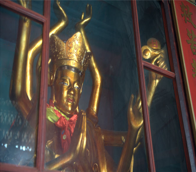 新建的大雄宝殿雄伟壮观,建筑面积达2300平方米,高24米,分上下两层。上层供奉佛像,供信教群众朝拜和从事佛事活动;下层为“福乐堂”用以安放永久性“往生灵位”和“消灾牌位”结合佛学、科学、突破传统格局,将佛法不离人间的理念融入其中。