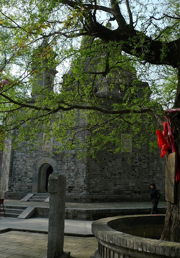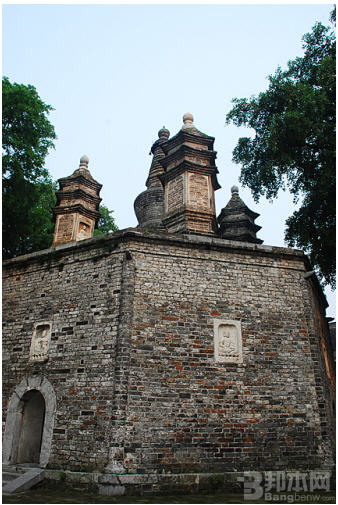 广德寺内多宝佛塔,又名“五星塔”,久负盛名,雄伟壮观,其建筑风格全国独一。1988年1月国务院公布为第三批全国重点文物保护单位。塔身系砖石结构。通高17米,分塔座和塔首两部分。塔座高7米,为八方形四券门,上造浅檐,下奠矮基,角贴圆柱,石雕龙首;每方设一佛龛,龛内供一石雕趺坐莲台佛像,四门皆有通南道入内,俗称“八方四门”。正门南向,上额石匾阴刻“多宝佛塔”。檐下横列斗大“佛”字3个。塔内砌八角形亭式塔心柱,也有壁龛坐佛。北面通南一侧,有石阶梯可登座顶。塔身五座小塔和覆盖楼梯口亭组。座顶主塔喇叭塔,高约10米,八方须弥座,刻仰复莲瓣四层,上承复钵式塔肚;再承须弥座,四面饰嵌佛石龛,座上置相轮,顶为铜铸莲花宝顶。主塔四方,各立一小塔,塔身作稍矮,为六角攒尖顶,顶上叠密檐三层,塔身也有嵌佛石龛。东侧阶梯。覆盖的方亭为四角攒尖形,佛塔内外共有佛像48尊。